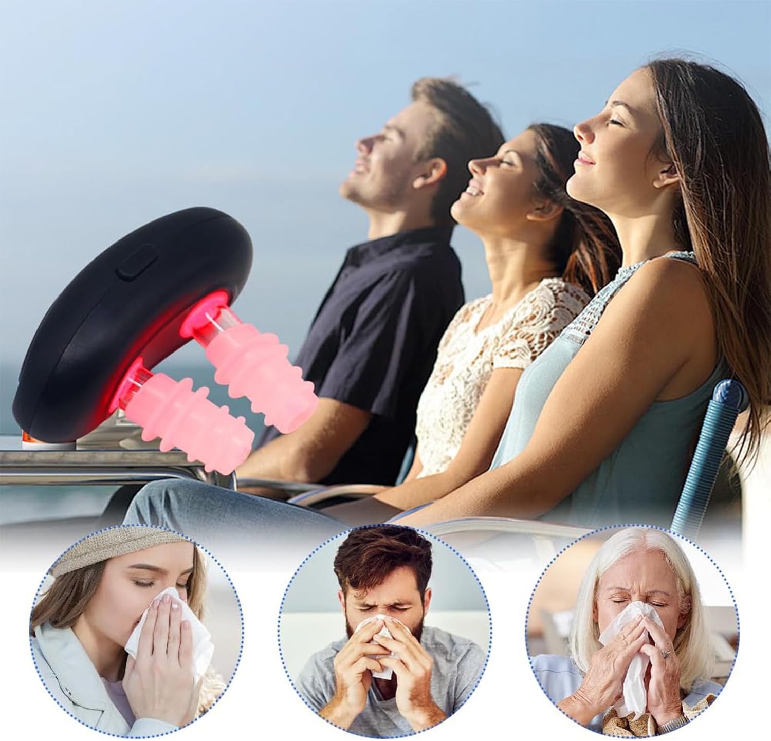 Es un dipositivo portátil de luz roja que alivia de forma natural la congestion, el resfrío y la sinusitis. Una luz roja de 660 nm, comprobada científicamente por su capacidad para desinflamar y mejorar la circulación en la zona nasal.